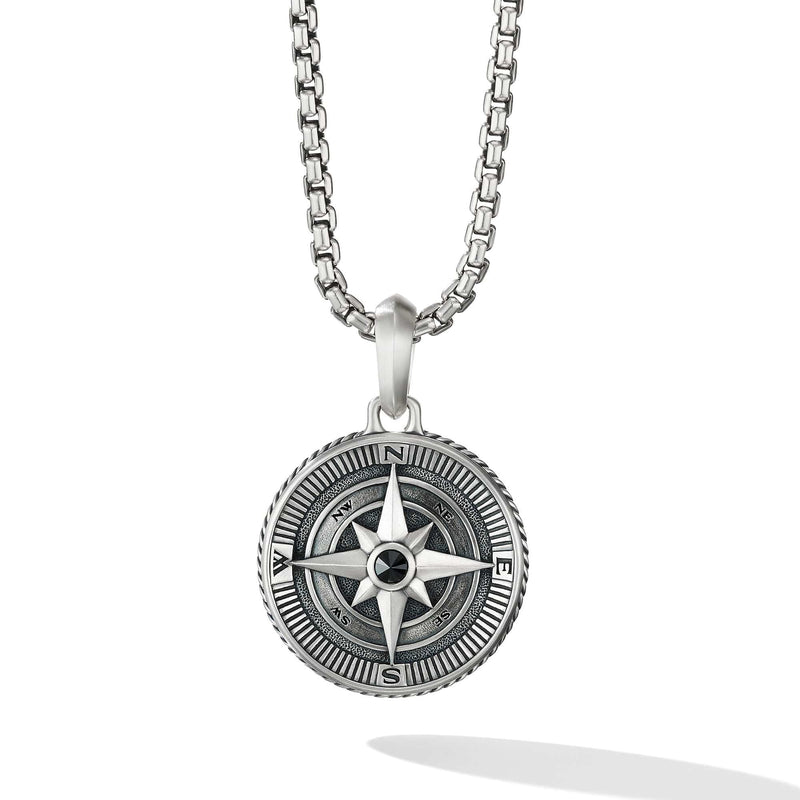 Maritime Compass Amulet in Sterling Silver with Center Black Diamond