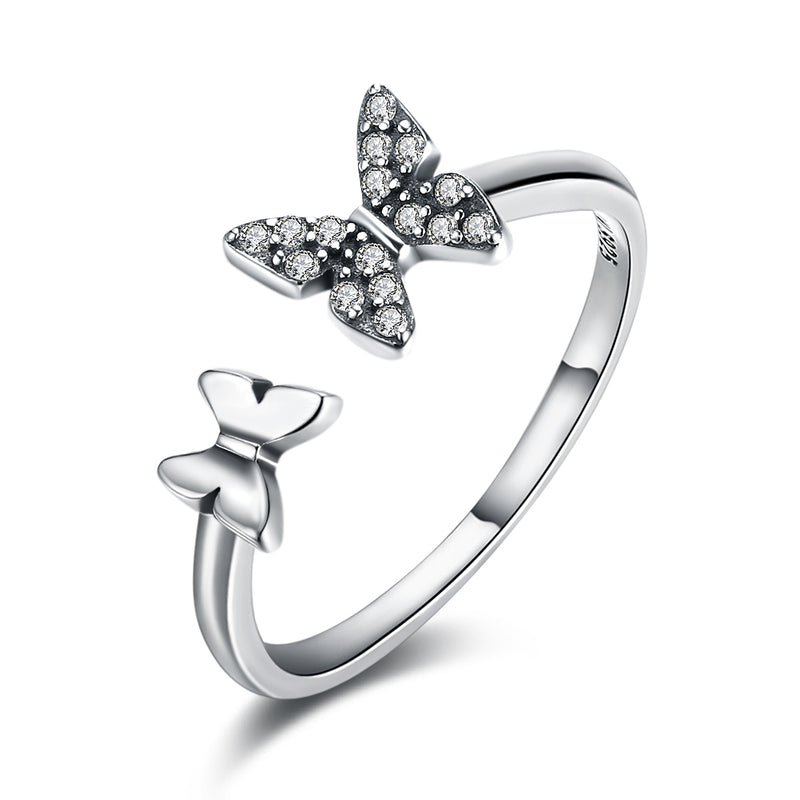 Sterling Silver Pink Swarovski & Butterfly Ring