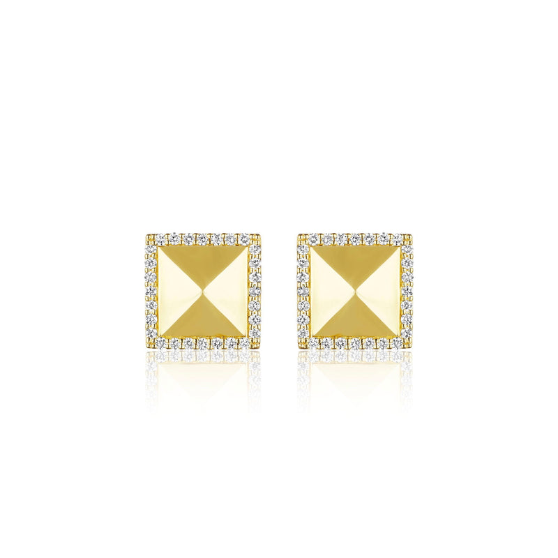 DY Elements Button Stud Earrings in Sterling Silver with Pave Diamonds