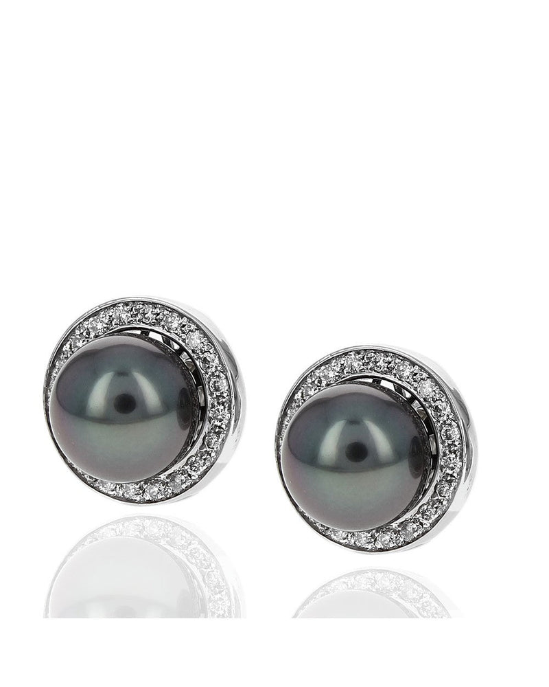 Tahitian Pearl Stud Earrings with Diamond Jackets