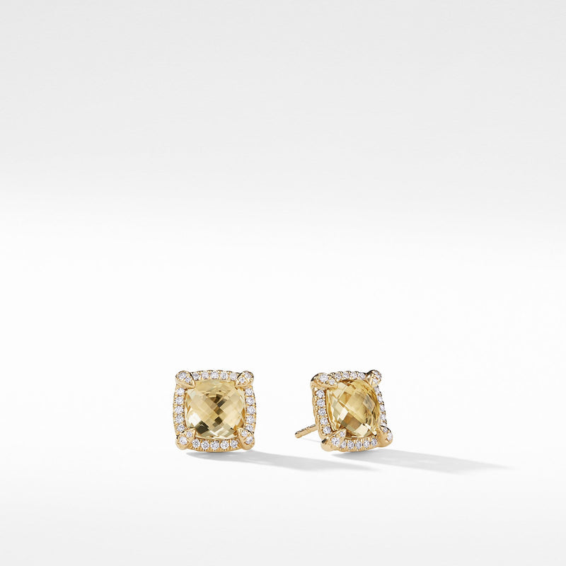 Chatelaine Pave Bezel Stud Earring with Champagne Citrine and Diamonds in 18K Gold,