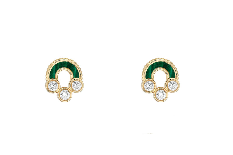 Bubbly Curved Emerald and Diamond Stud Earrings