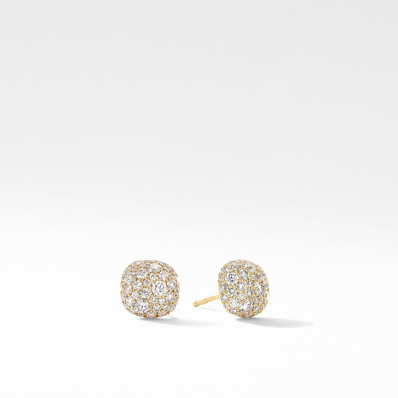 DY Elements Button Stud Earrings in 18K Yellow Gold with Pave Diamonds