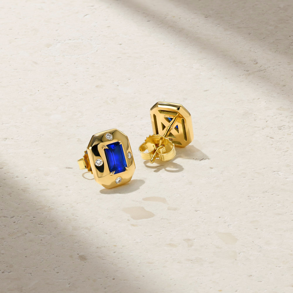 Dilara Bezel Set Twin Heart Ruby and Diamond Stud Earrings