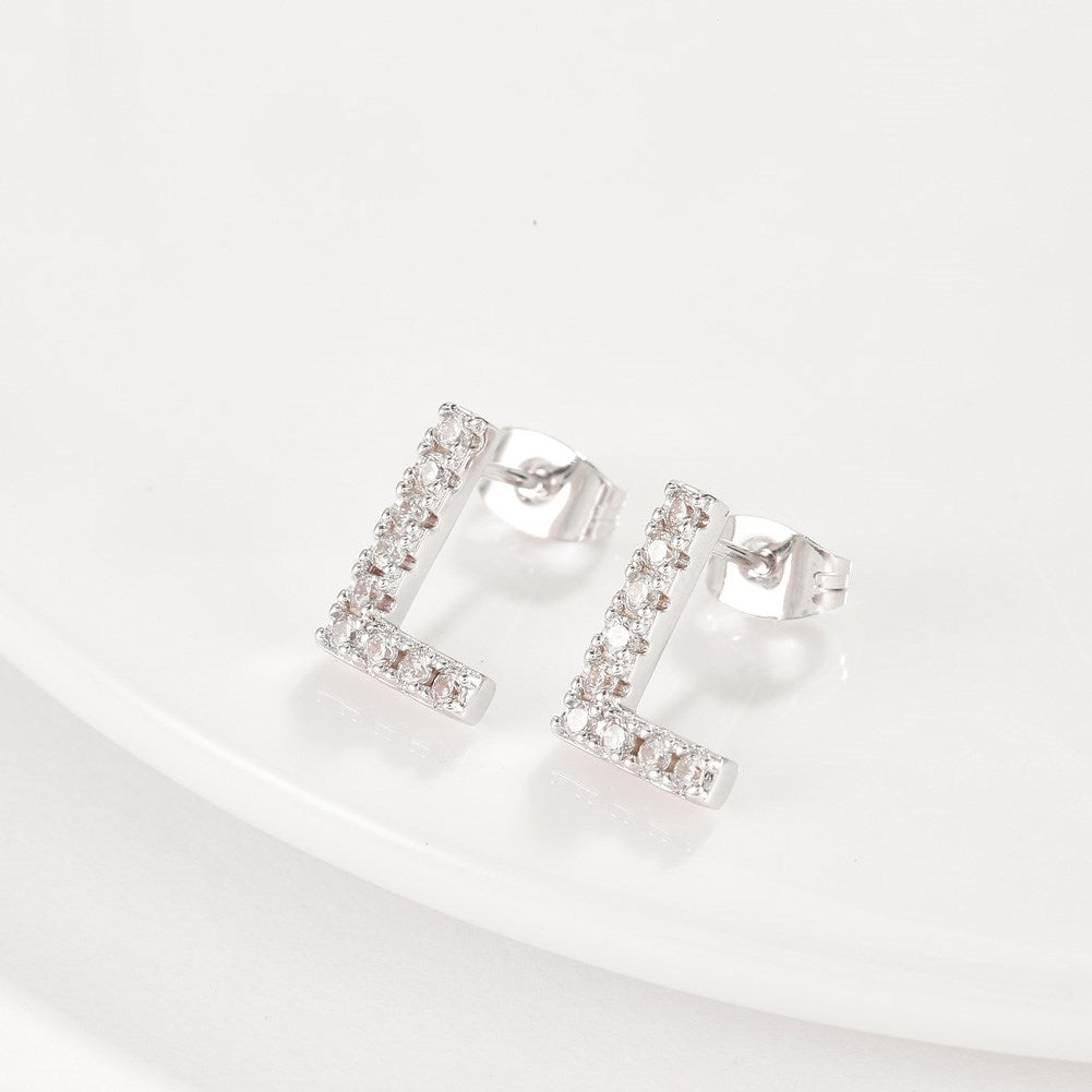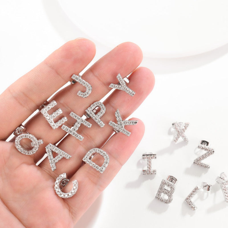 Swarovski Crystals Pave Letter Stud Monogram Initial Earrings in 18K White Gold Plating