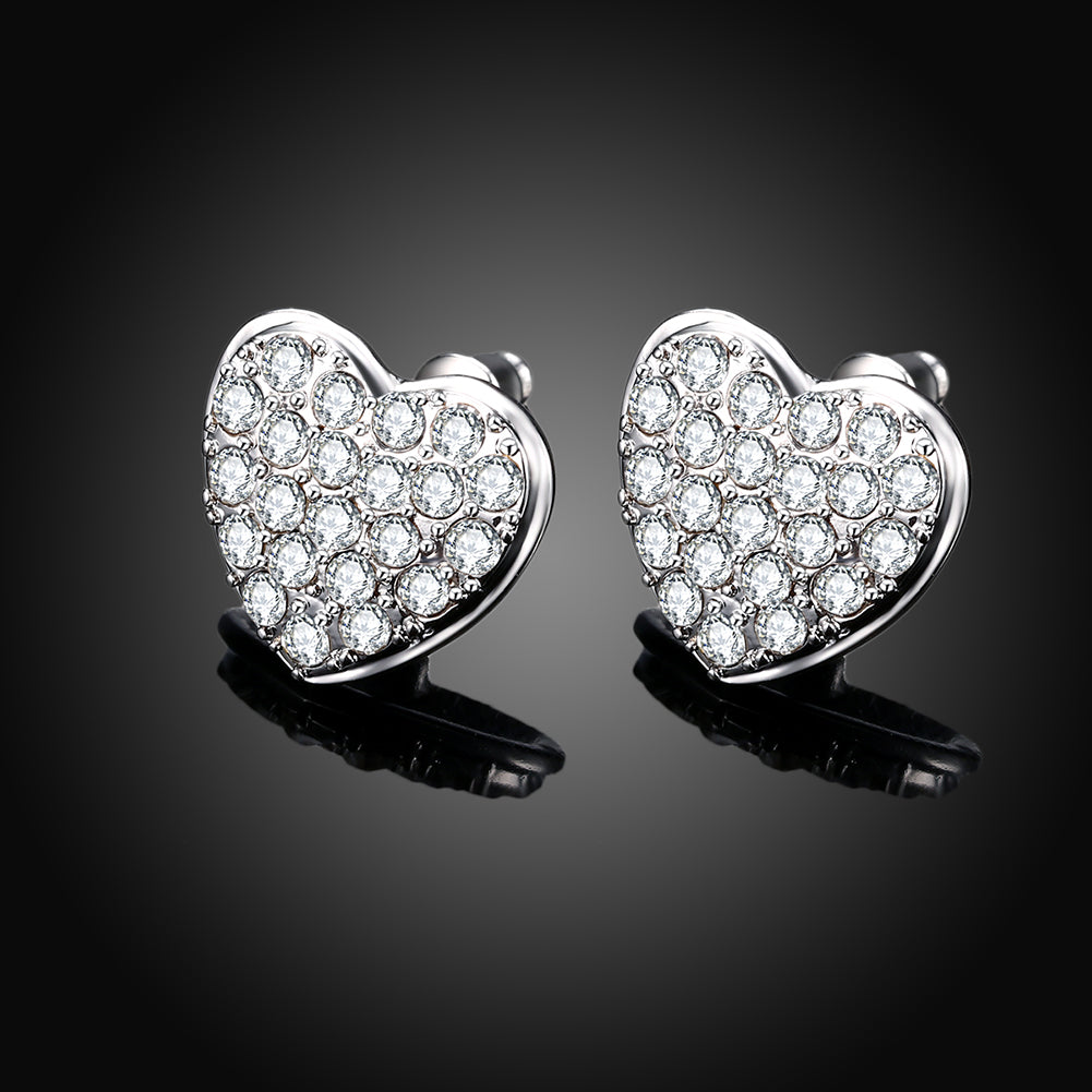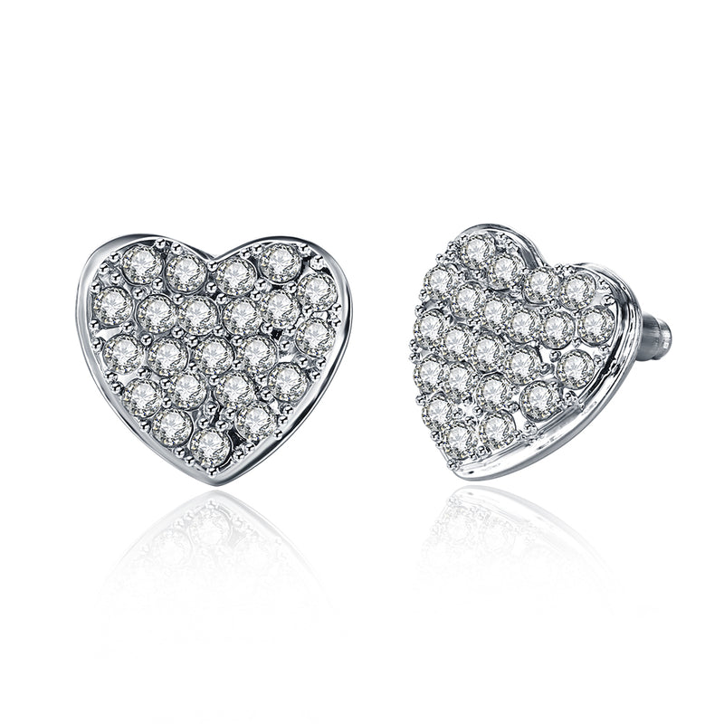 Micro-Pave Swarovski Elements Heart Shaped Studs in 18K White Gold