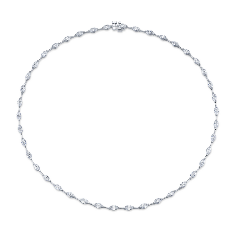 17 Carat White Gold Emerald Cut Diamonds by the Yard Necklace