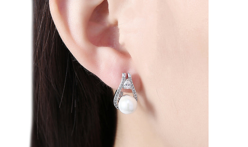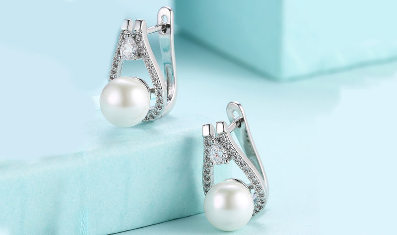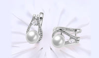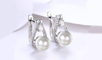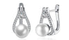 14K White Gold Plating Austrian Elements Pav'e Freshwater Pearl Pear Cut Clip On Earrings