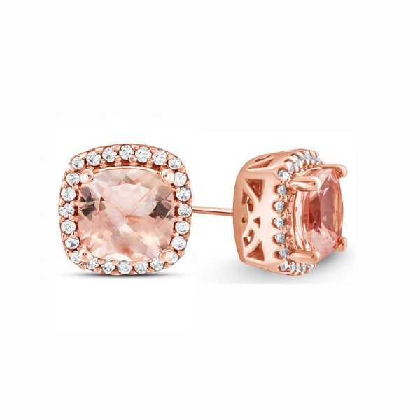 2.00 CTTW Morganite Cushion Cut Pav'e Studs in 14K Rose Gold