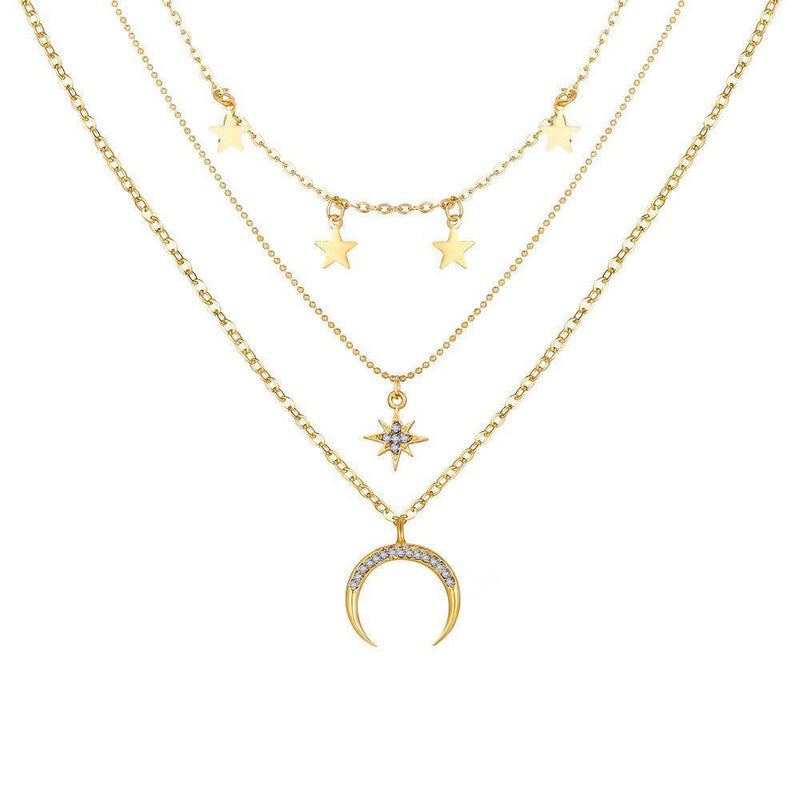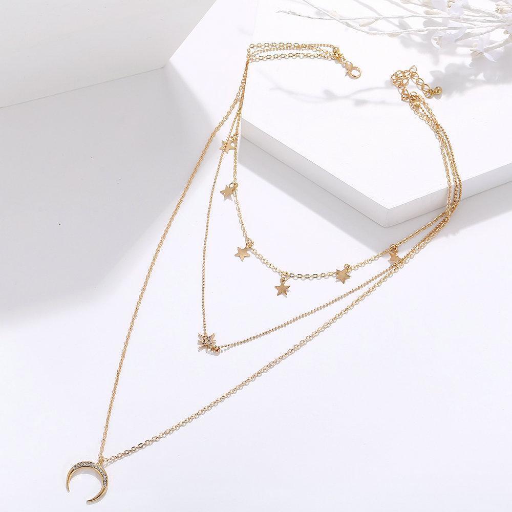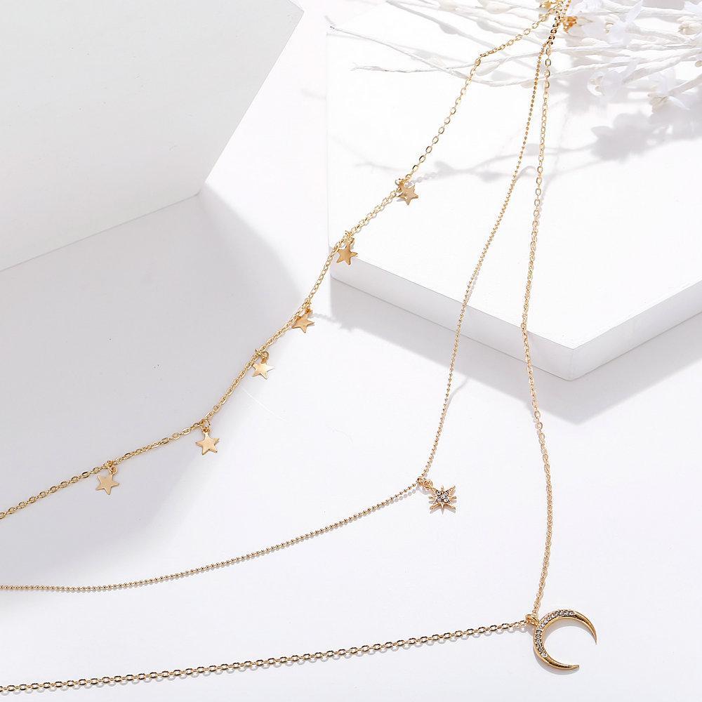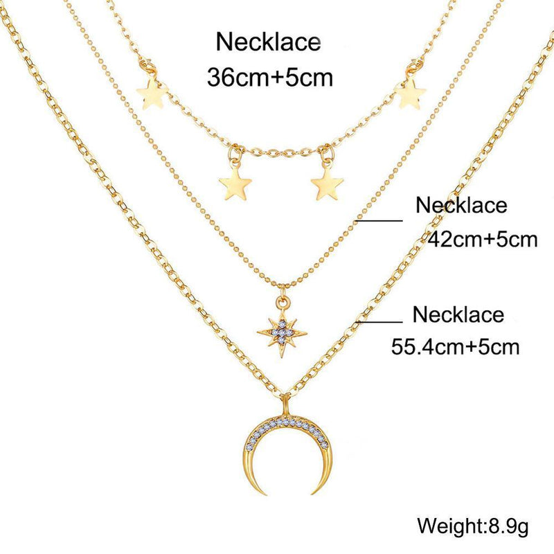 3 Piece Celestial Drop Necklace With Austrian Crystals 18K Gold Plated Necklace