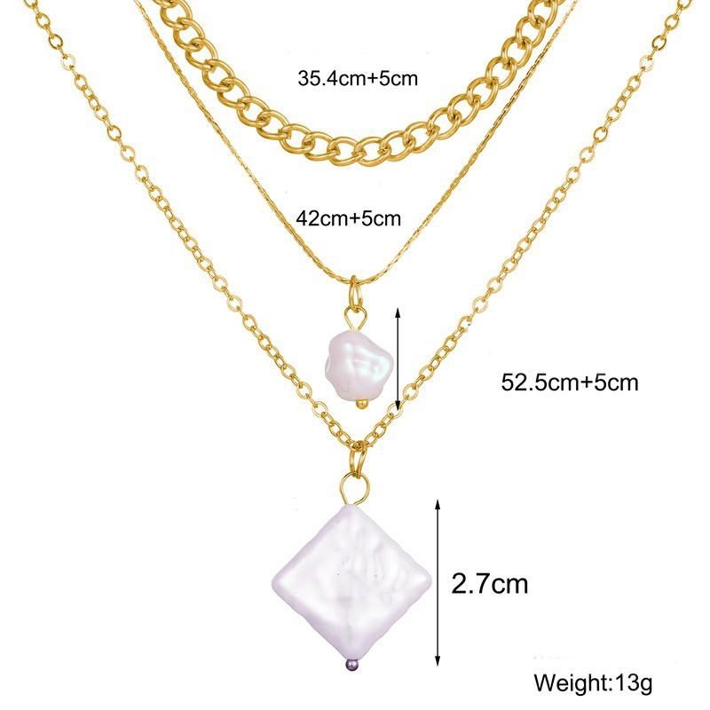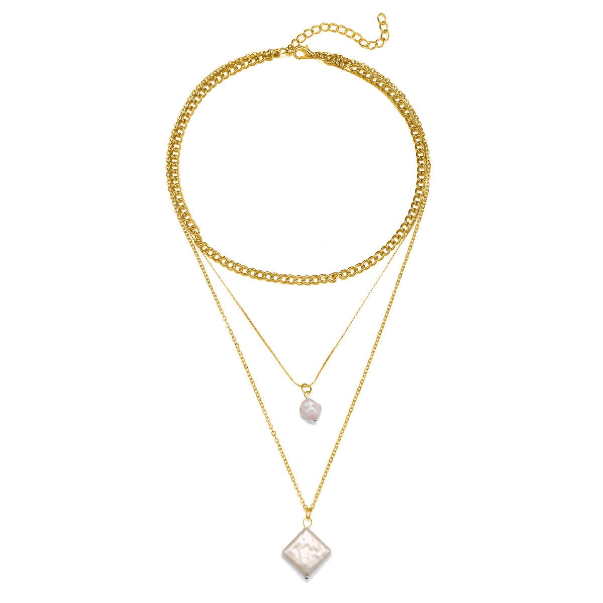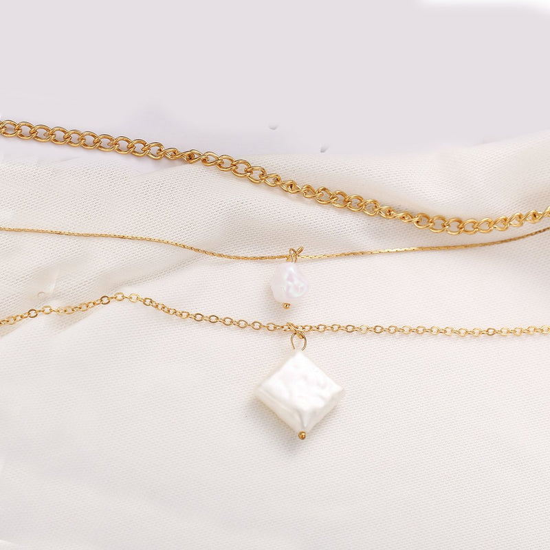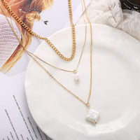 3 Piece Pearl Linear Chain Necklace in 18K Gold Plated