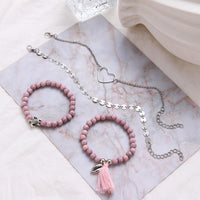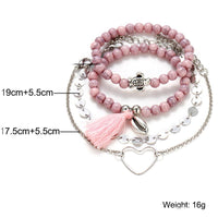 4 Piece Pink Tassell Bracelet Set 18K White Gold Plated Bracelet
