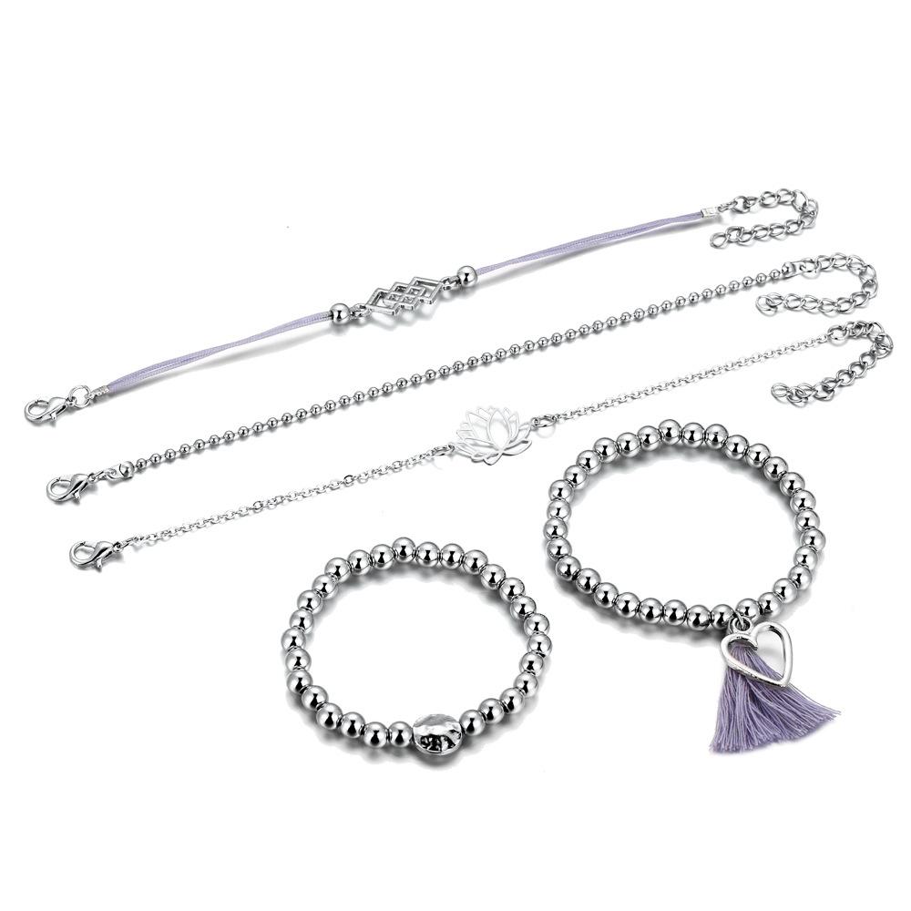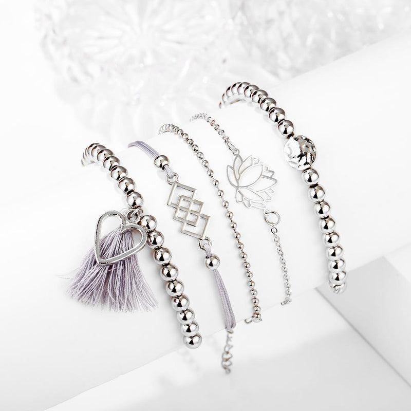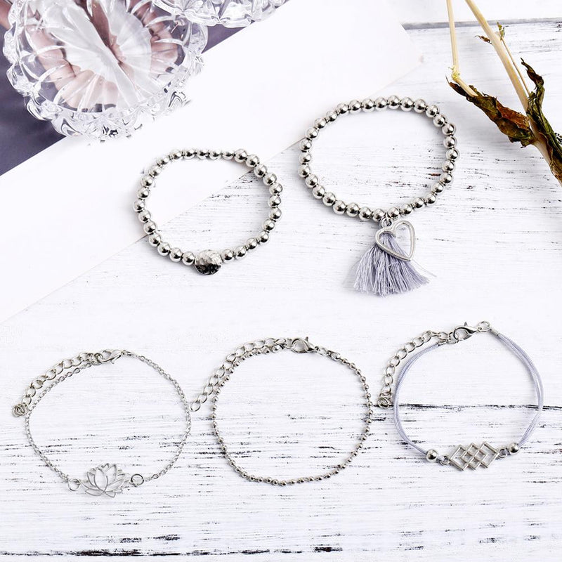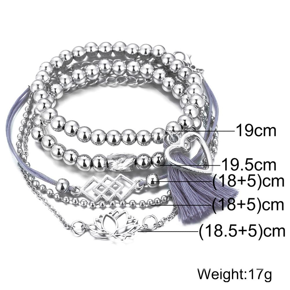 5 Piece Gray Tassell Bracelet Set 18K White Gold Plated Bracelet
