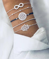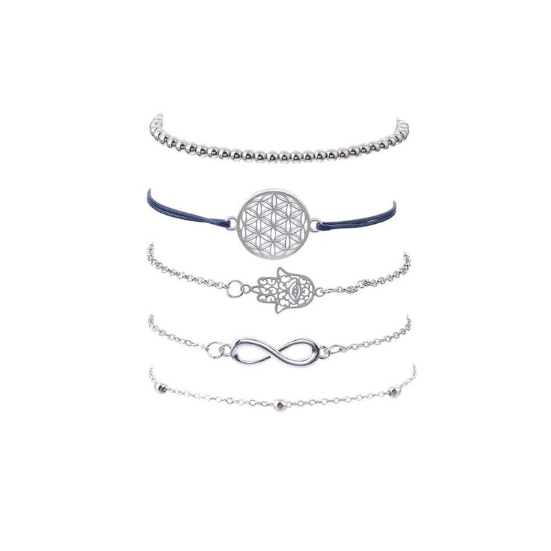 5 Piece Hamsa Infinity Bracelet Set 18K White Gold Plated Bracelet