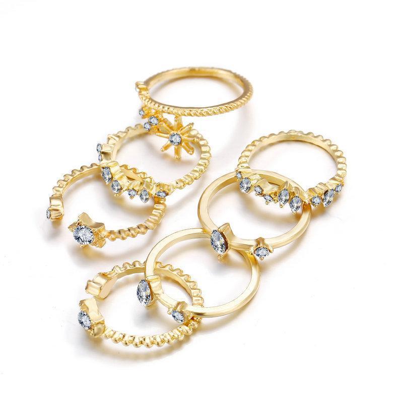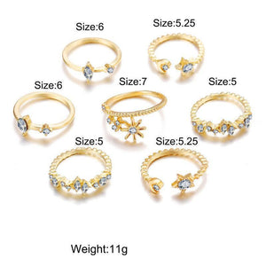 5 Piece Stars Ring Set With Austrian Crystals 18K Gold Plated Ring