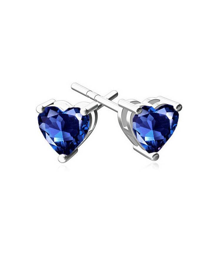 6mm Heart Stud Earring With Swarovski Crystals - Blue in 18K White Gold Plated