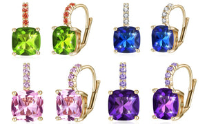Ascher Cut Leverback Earrings Set in 18K Gold Plating Made with Swarovski Crystal