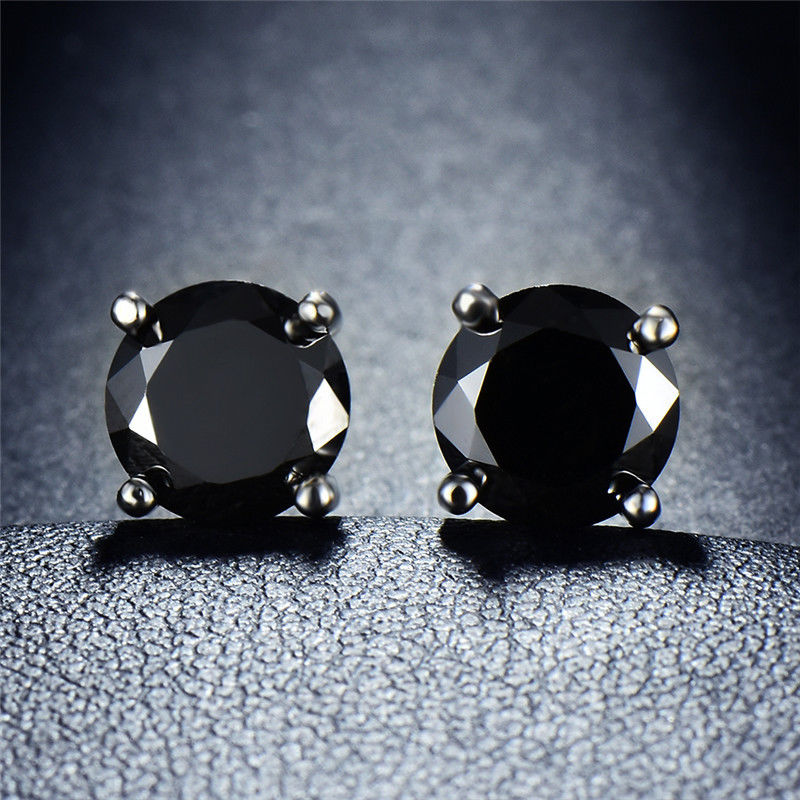 Black Onyx Embellished with Swarovski Crystals 7mm Stud Earringin 18K White Gold Plated