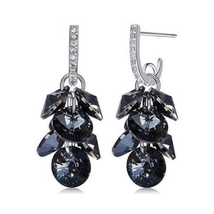 Black Swarovski Dangling Cluster Grapevine Earrings in 18K White Gold