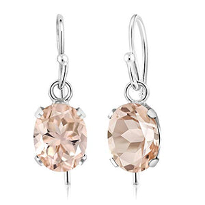 Dangling Silver Plating Oval - Cut Morganite Earrings
