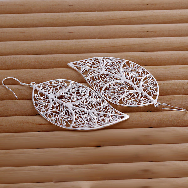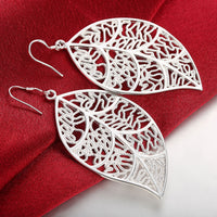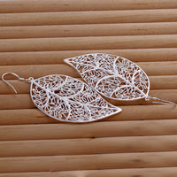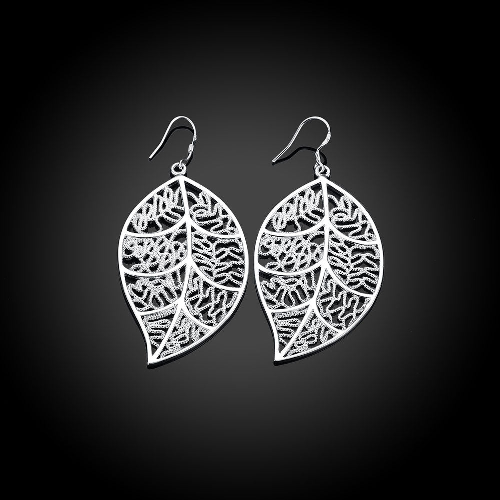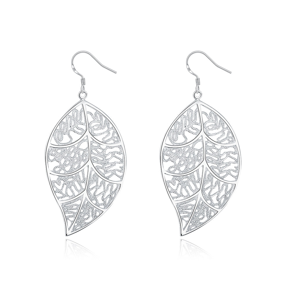 Diamond Cut Leaf Drop Earring in 18K White Gold Plated