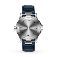 Stainless steel case, Automatic, self-winding, Diameter 42.0 mm, Blue dial with luminescence, Blue rubber strap, Strap width 22.0 mm. Powered by the IWC-manufactured 32111 caliber, this Aquatimer Automatic features a stainless steel case, a blue dial, and a blue rubber strap.