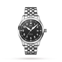 Pilot's Watch Mark XX - Less is more Presented in a robust 40mm stainless steel case with a 5-link stainless steel bracelet Bold black dial with rhodium-plated hands Water resistant up to 10 bar (100 metres) Powered with precision by the IWC-manufactured 32111 calibre automatic movement LESS IS MORE A quintessential tool for the modern-day explorer since 1994, the IWC Pilot's Watches collection showcases innovative engineering and an iconic Schaffhausen design. A versatile sports range, these reliable timepieces are ready to become a distinguished companion for every adventure, not just in the cockpit. The successor to the legendary Mark 11, developed for pilots and navigators of the British Royal Air Force, this Mark XX model reduces the design and technical functionality of a pilot's watch to its purest essence, proving that less can truly be more. UTILITARIAN TOOL WATCH DESIGN This statement pilot's watch is housed within a robust and corrosion-resistant 40mm stainless steel case, secured with a classic stainless steel 5-link bracelet with the EasX-CHANGE system. Styled to resemble a cockpit instrument, the high contrast black dial is home to rhodium-plated hands, white numerals and indices, and a triangular index at 12 o'clock. Luminous elements ensure that the dial is legible in all conditions. Powered with precision by an IWC manufactured 32111 calibre automatic movement, this timepiece benefits from a 120-hour power reserve as well as water resistance up to 10 bar (100 metres).