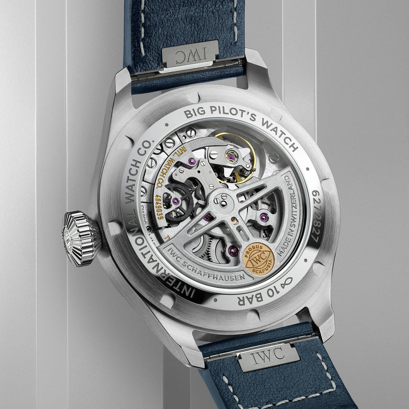 Reimagining an iconic design Powered by the 82100 calibre automatic movement Presented in a 43 mm stainless steel case and secured by a blue leather strap with quick release technology Water resistant up to 10 bar (100 metres) Showcasing a blue dial with luminescence for optimum visibility A PILOT’S COMPANION A quintessential tool for the modern-day explorer, IWC Pilot’s Watches showcase innovative engineering and an iconic Schaffhausen design. A versatile sports watch, this collection consists of reliable timepieces ready to become a distinguished companion. Made from robust and exquisite materials, this 43mm Big Pilot model provides exceptional navigation and dependability while paying tribute to aviator history. TO ACCOMPANY YOU FROM GREAT HEIGHTS This Big Pilot’s 43mm model combines iconic design with innovative watchmaking technology. Showcasing a blue dial with appliques coated in luminescence, and a black calfskin leather strap with IWC EasX-CHANGE system technology for easy and quick release, this timepiece is always ready for action. This piece is powered by the 82100 calibre movement with pellaton automatic winding system. For an elevated and enhanced performance, this model also features a 60-hour power reserve, and water resistance to 10 bar (100 metres). To prevent displacement and to withstand drop in air pressure, the sapphire glass is firmly secured.