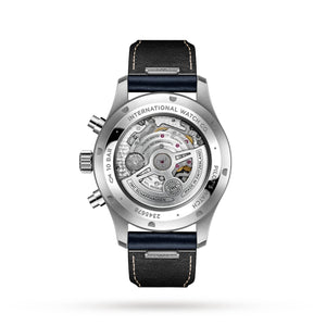 Reimagining an iconic design Powered by the IWC-manufactured 69385 calibre automatic movement Presented in a 43mm stainless steel case secured by a blue leather strap with quick release technology Water resistant up to 10 bar (100 metres) Showcasing advanced chronograph functions A PILOT’S COMPANION A quintessential tool for the modern-day explorer, IWC Pilot’s Watches showcase innovative engineering and an iconic Schaffhausen design. A versatile sports watch, this collection consists of reliable timepieces ready to become a distinguished companion. Made from robust and exquisite materials, this 43mm model provides exceptional navigation and dependability for aviators. THE ULTIMATE SPORTS WATCH The 43mm stainless steel case is paired with a robust, yet sophisticated black calfskin leather strap complete with IWC EasX-CHANGE system technology for easy and quick release of the bracelet. This pilot’s watch chronograph showcases a blue-toned dial, home to small hacking seconds, a day and date display, and advanced chronograph functions providing precision to the nearest hour, minute, and second. Powered by the IWC- manufactured 69385 calibre automatic movement, this timepiece includes a Cotes de Geneve finish, a 46-hour power reserve, and water resistance up to 10 bar (100 metres).