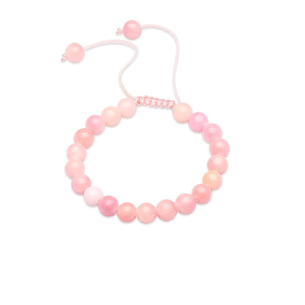 Light Pink Stone Adjustable Natural Stone Bracelet in 18K White Gold Plated