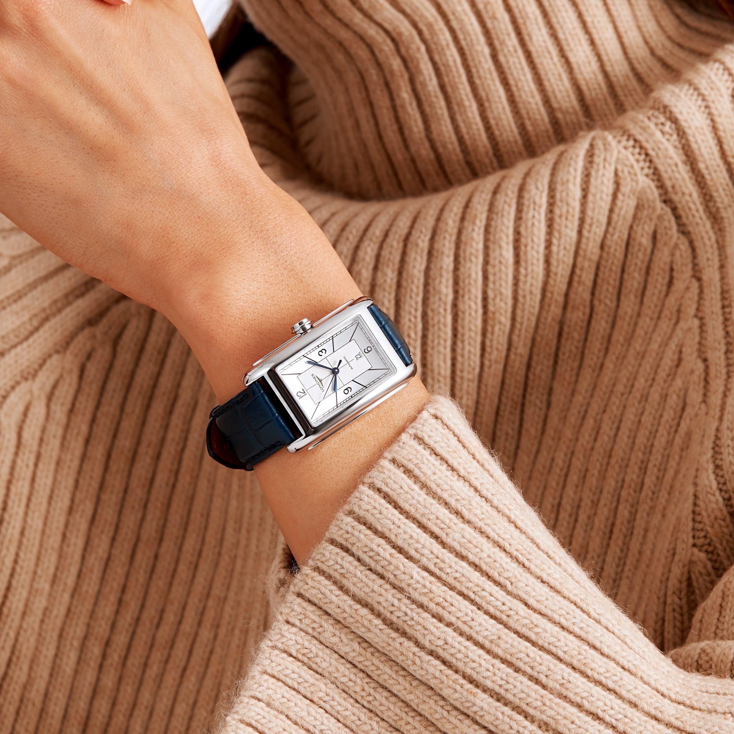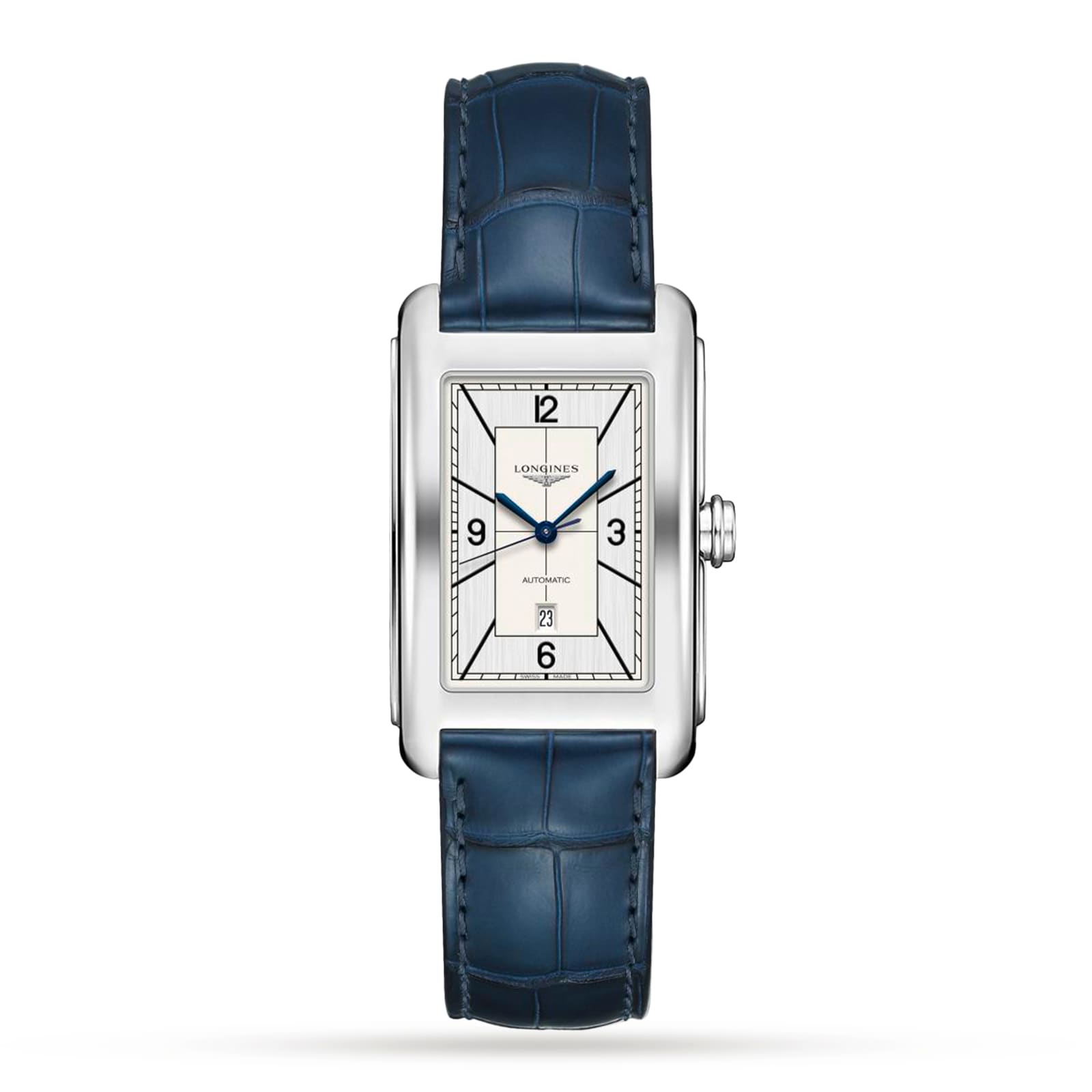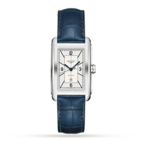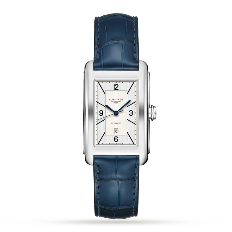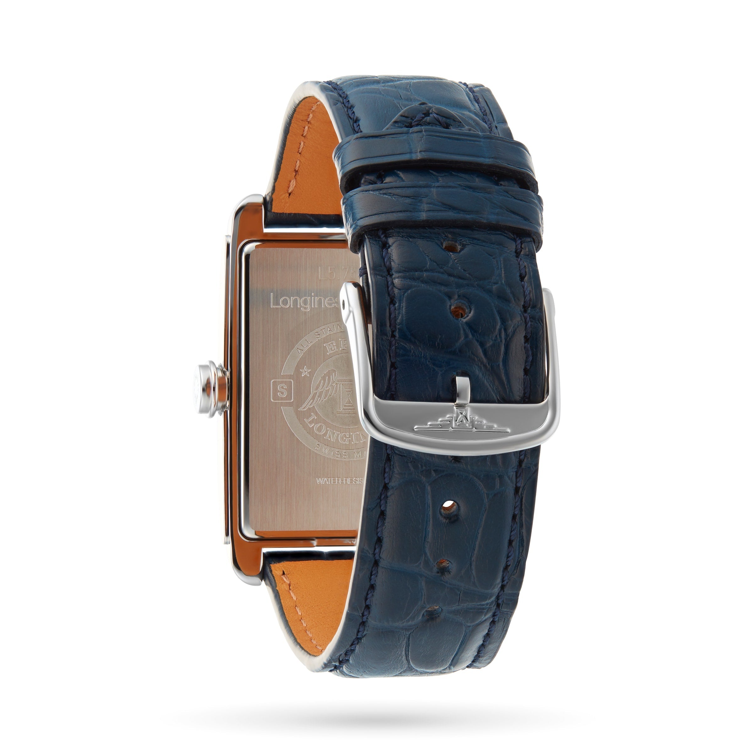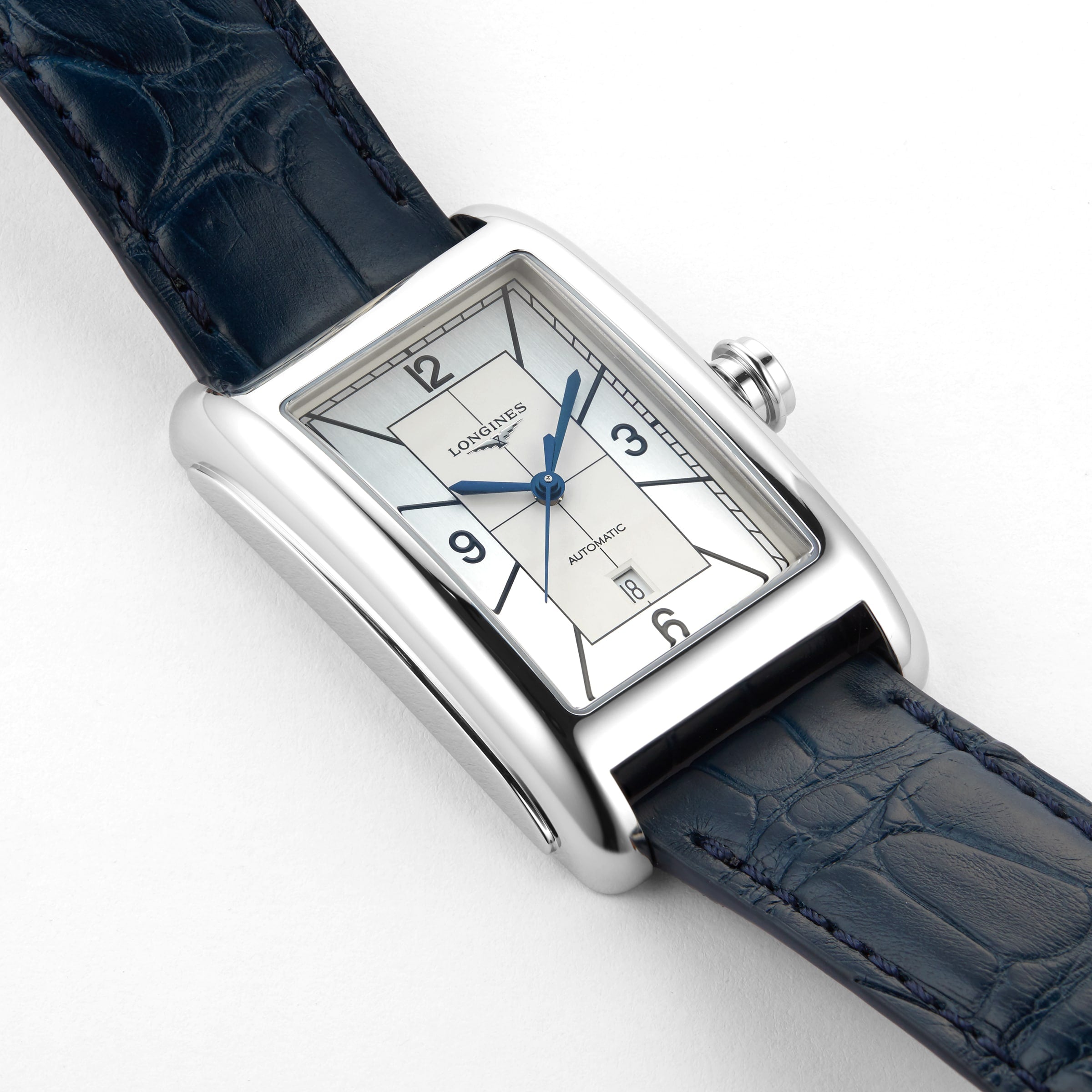A symbol of elegance and grace Paying homage to the sweetness of life Rectangular stainless steel case with a blue alligator leather strap Silver-tone dial with striking blue steeled hands Powered by the L592 calibre movement ELEGANCE AND GRACE A symbol of elegance and grace, the Longines DolceVita collection pays homage to the sweetness of life. Inspired by the ‘Dolce Vita’, this updated collection offers a new interpretation featuring softened lines and the Longines signature medallion on the caseback. REFINED BEAUTY This refined timepiece pairs a rectangular 27.70 x 43.80mm stainless steel case with a blue alligator leather strap. The silver-tone dial is complete with striking blue steeled hands and painted Arabic numeral, as well as a date display at 6 o’clock. Powered by the L592 calibre movement, this self-winding chronometer features 45 hours of power reserve.
