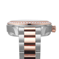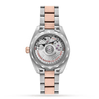 A distinguished, elegant Seamaster combining luxury materials with an ocean heritage 34mm stainless steel and 18K Sedna™ gold ladies watch Pale pink, wave-embossed dial with 11 marquise-cut ruby hour markers Diamond-set bezel and 18K Sedna™ gold crown OMEGA Master Chronometer calibre 8800 for reliability and precision THE LUXURY SEAMASTER The Seamaster Aqua Terra is a new chapter in the illustrious ocean-going heritage of OMEGA, a new take on the classic Seamaster design that can be worn in any context - just as comfortable swimming or diving as it is worn on more formal occasions. Enhanced with several luxurious design touches, this elegant ladies timepiece includes inlaid marquise-cut rubies for the indexes, shaped in the form of sailboat hulls and a fully diamond-set bezel. The sporty practicality of this range is maintained with the 150m water resistance and 5 year OMEGA guarantee. TECHNICAL EXCELLENCE The Aqua Terra model was one of the first timepieces to be powered by OMEGA’s revolutionary Co-axial escapement, so this timepiece continues the tradition of excellence with the latest Master Chronometer, the calibre 8800. This METAS certified automatic movement is rated to resist magnetic fields up to 15000 gauss, with the additional benefit of needing far less regular servicing than a typical automatic movement. 11 marquise-cut ruby hour markers bring a touch of fire to the pale pink, wave- embossed dial in concert with the diamond bezel. The stainless steel and 18K Sedna™ gold bracelet matches the case beautifully and is held in place with a butterfly clasp. In true Seamaster style, the wave-edged caseback houses a sapphire crystal for viewing OMEGA's beautiful, industry-leading movement, in this case the calibre 8800.