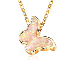 Opal Created Butterfly-Pink 18K Gold Plated Necklace in 18K Gold Plated