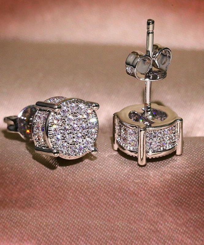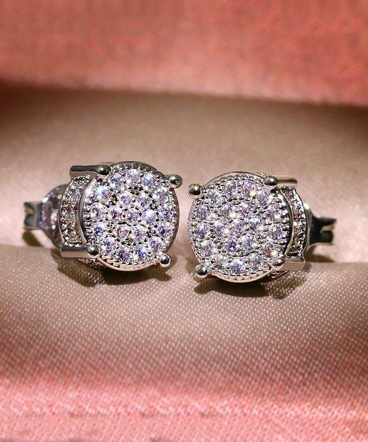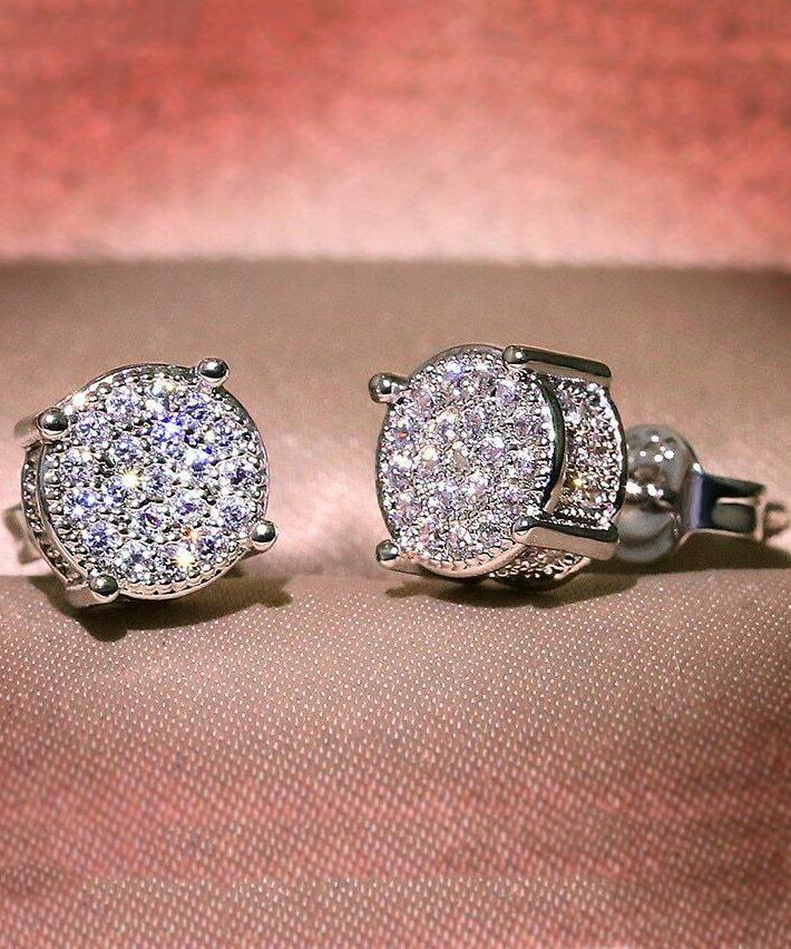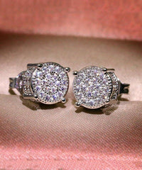 Pave Cluster Stud Earring With Swarovski Crystals - in 18K White Gold Plated