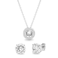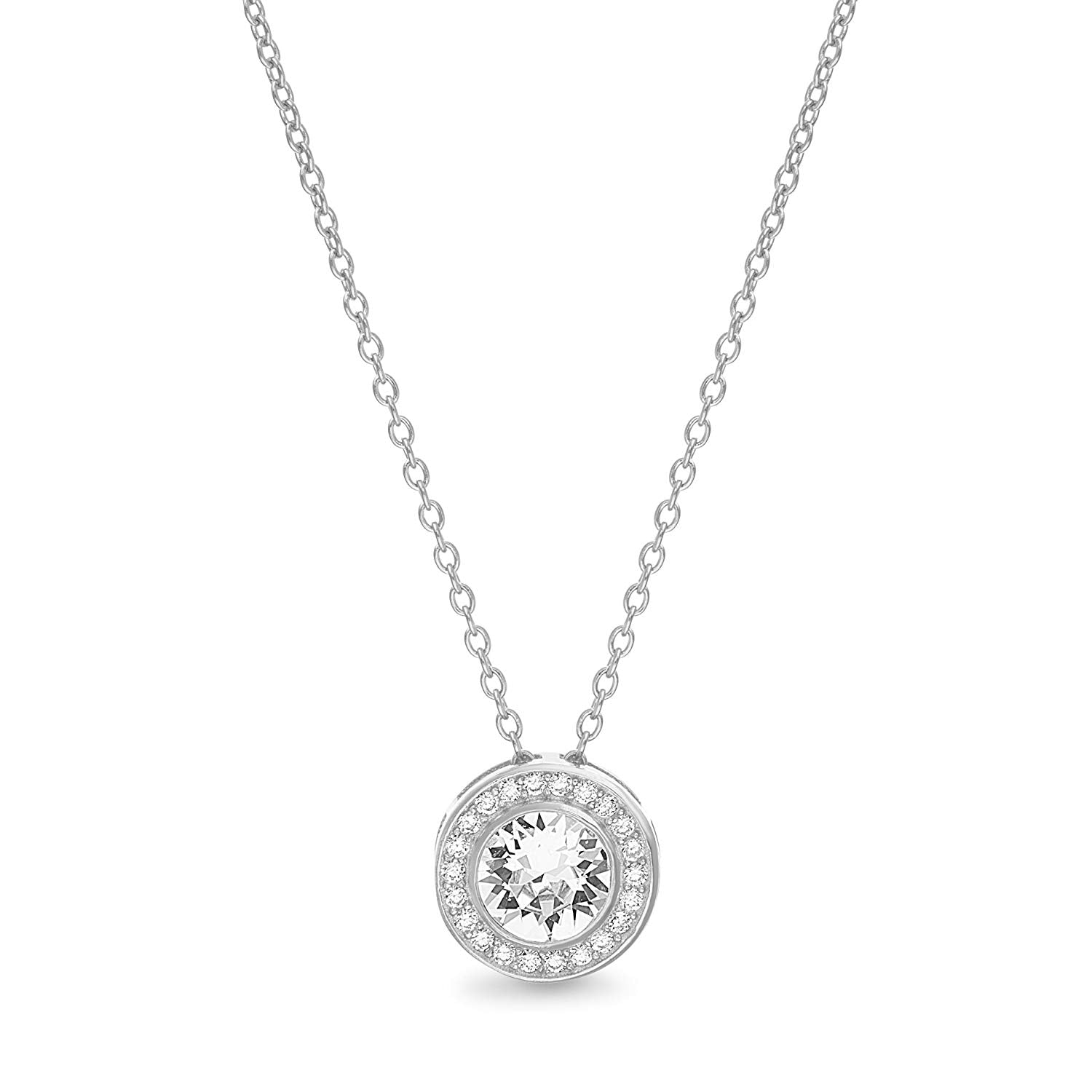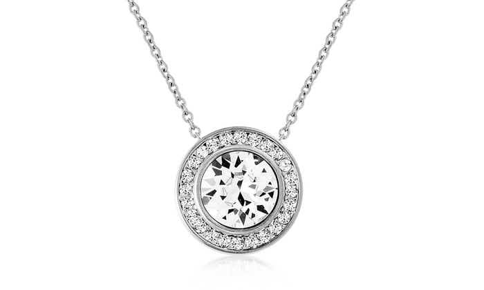 Pave Halo Disc Necklace & Stud Earring With Swarovski Crystals with Luxe Box - 18K White Gold