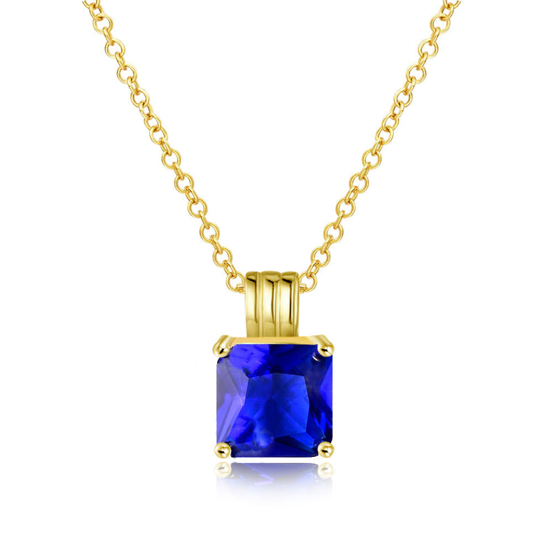 Sapphire Princess Cut Classic Necklace in 18K Gold Gemstone
