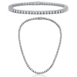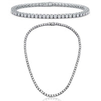 Tennis Necklace and Bracelet Set made With Swarovski Crystals with Luxe Box - 18K White