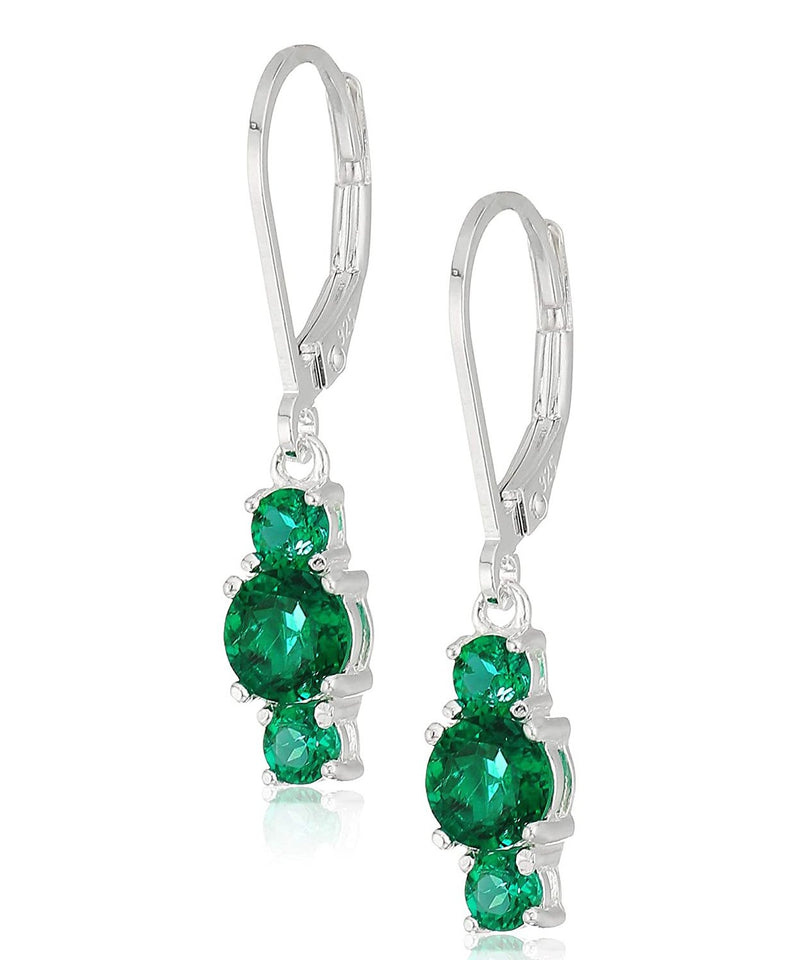 Three Stone Leverback Dangle With Swarovski Crystals - Emerald in 18K White Gold Plated