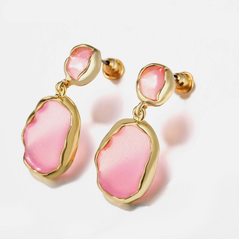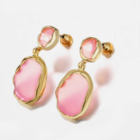 Transparent Glass Stone Drop Earring - Pink 18K Gold Plated Earring
