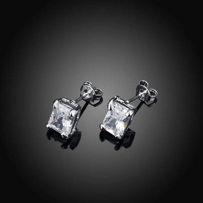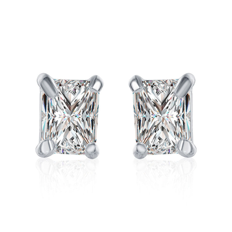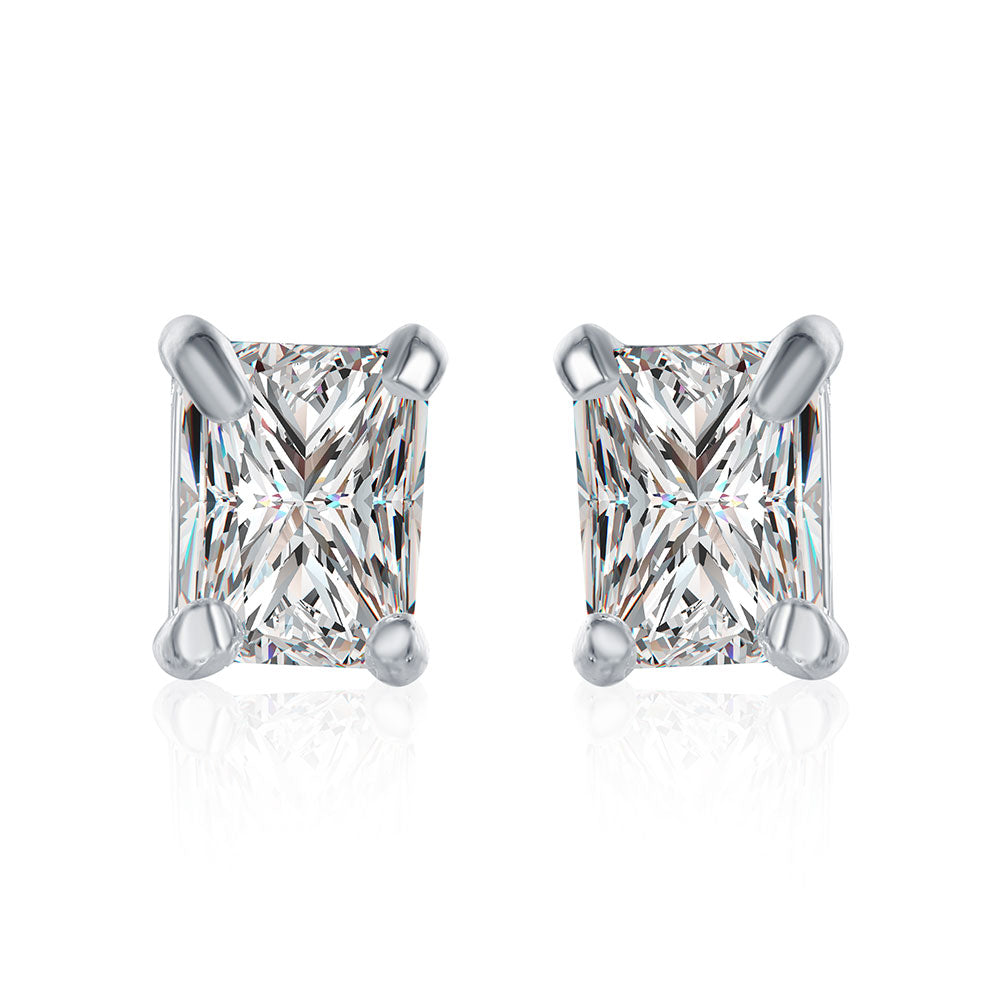 White Topaz Square Stud Earring in 18K White Gold Plated 6mm